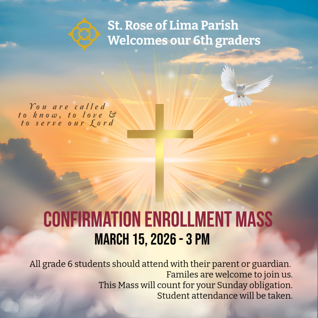 St. Rose School students in grade 6 should also attend this Mass.