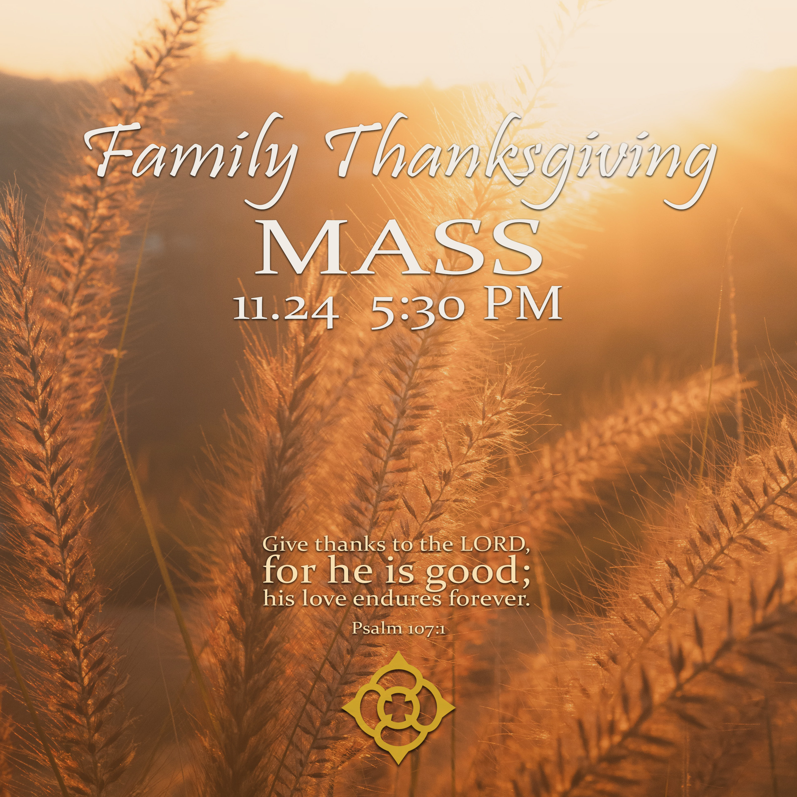 At the Family Thanksgiving Mass, please bring non-perishable food item to donate to the Faith Food Pantry.